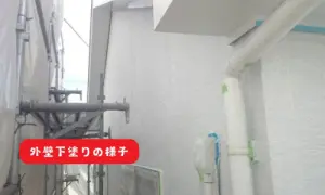 写真は、外壁の下塗りをしてる様子です。外壁の素材は、モルタルですね^^